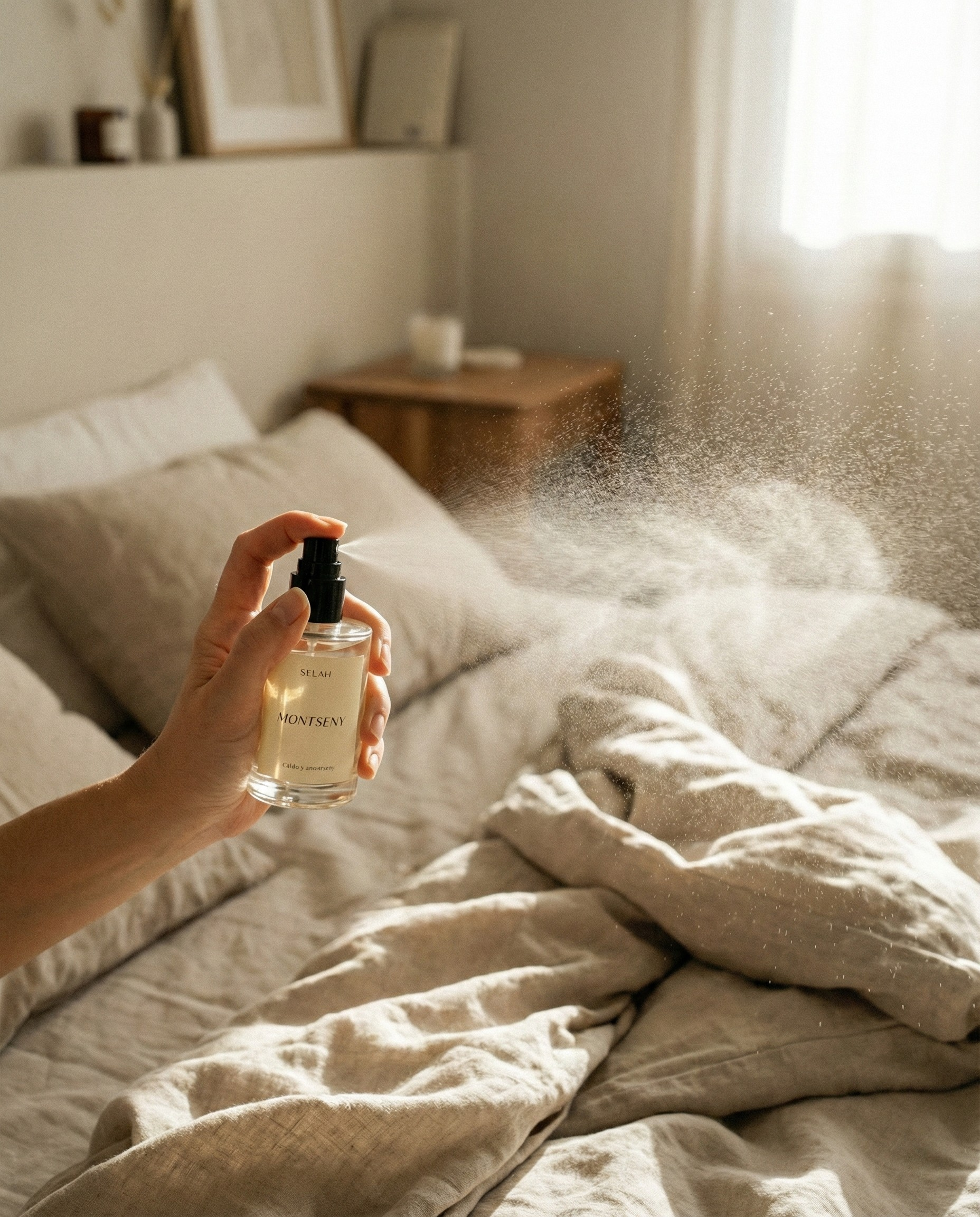 - Fórmula Especial para Textiles: Diseñado para ser pulverizado directamente sobre cortinas, cojines y ropa de cama. El aroma se ancla en el tejido y se libera suavemente con el movimiento.